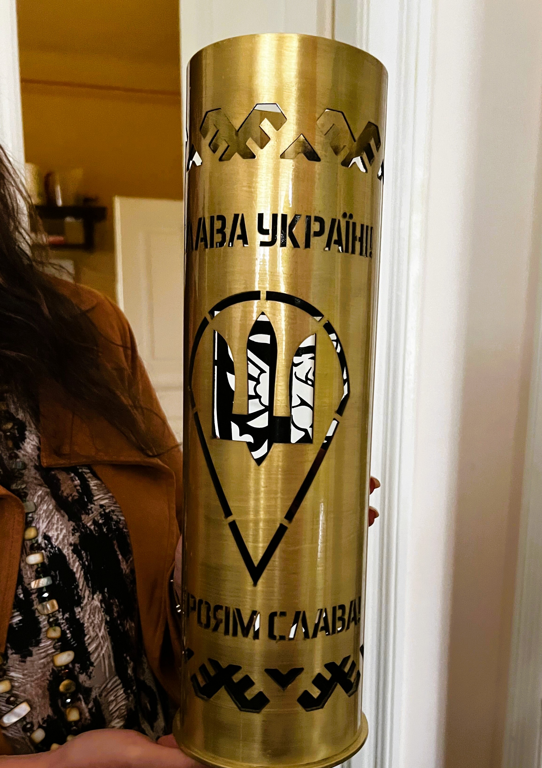 Another room holds medals and decorated shells that troops on the front line have presented to the team. Some of these stunningly beautiful shells are available for sale and. If I thought I would have got it through air port security I would have bought one myself. I hope that we may be able to work out a way to ship some to the UK for live auction to raise much needed funds.